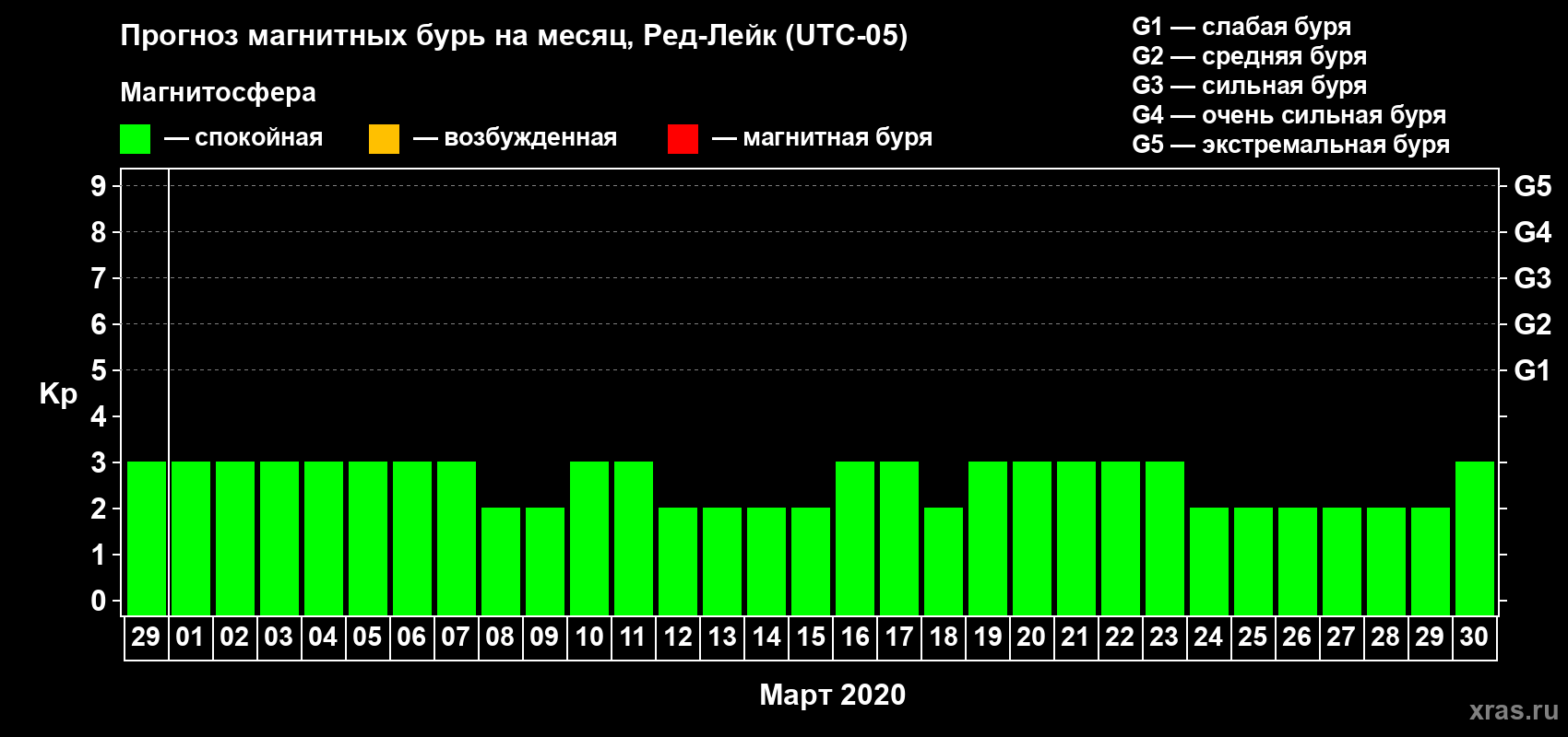 Прогноз магнитных бурь в Ред-Лейке — 29 февраля 2020 года