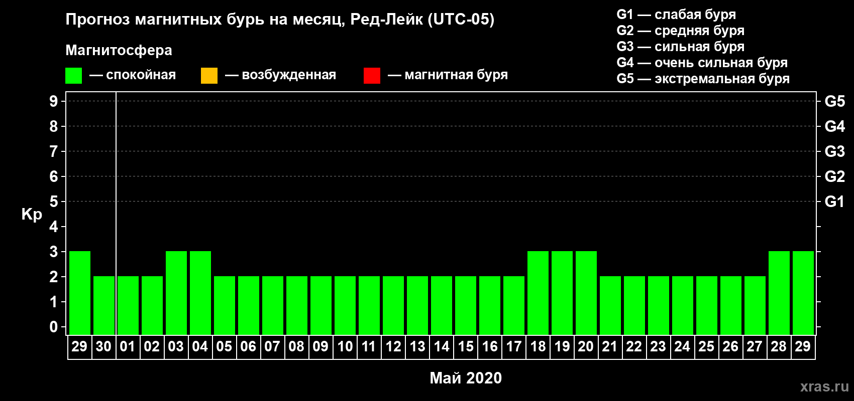 Прогноз магнитных бурь в Ред-Лейке — 29 апреля 2020 года