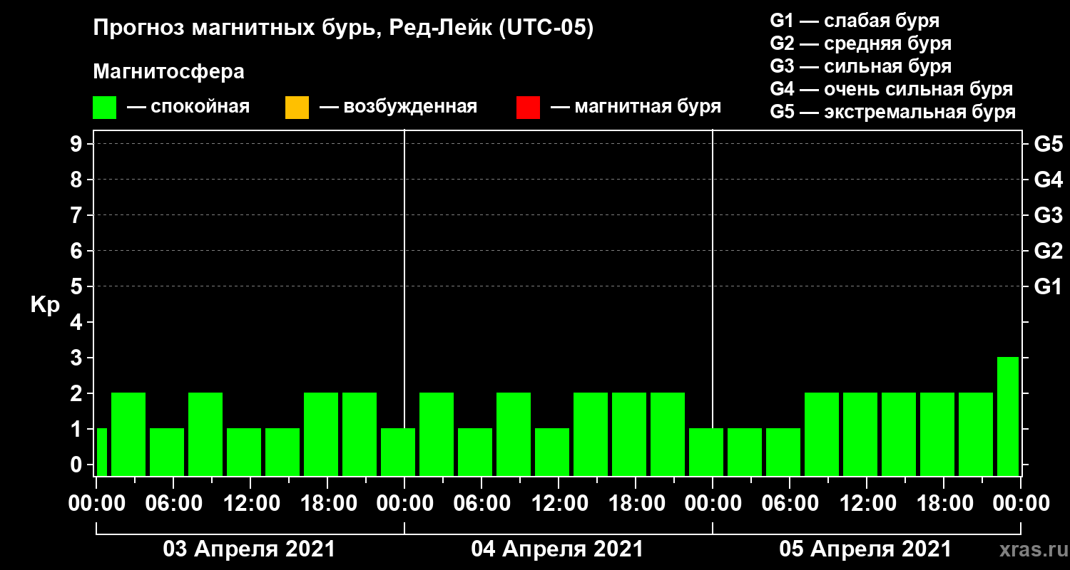 Прогноз магнитных бурь в Ред-Лейке на 3 апреля 2021 года
