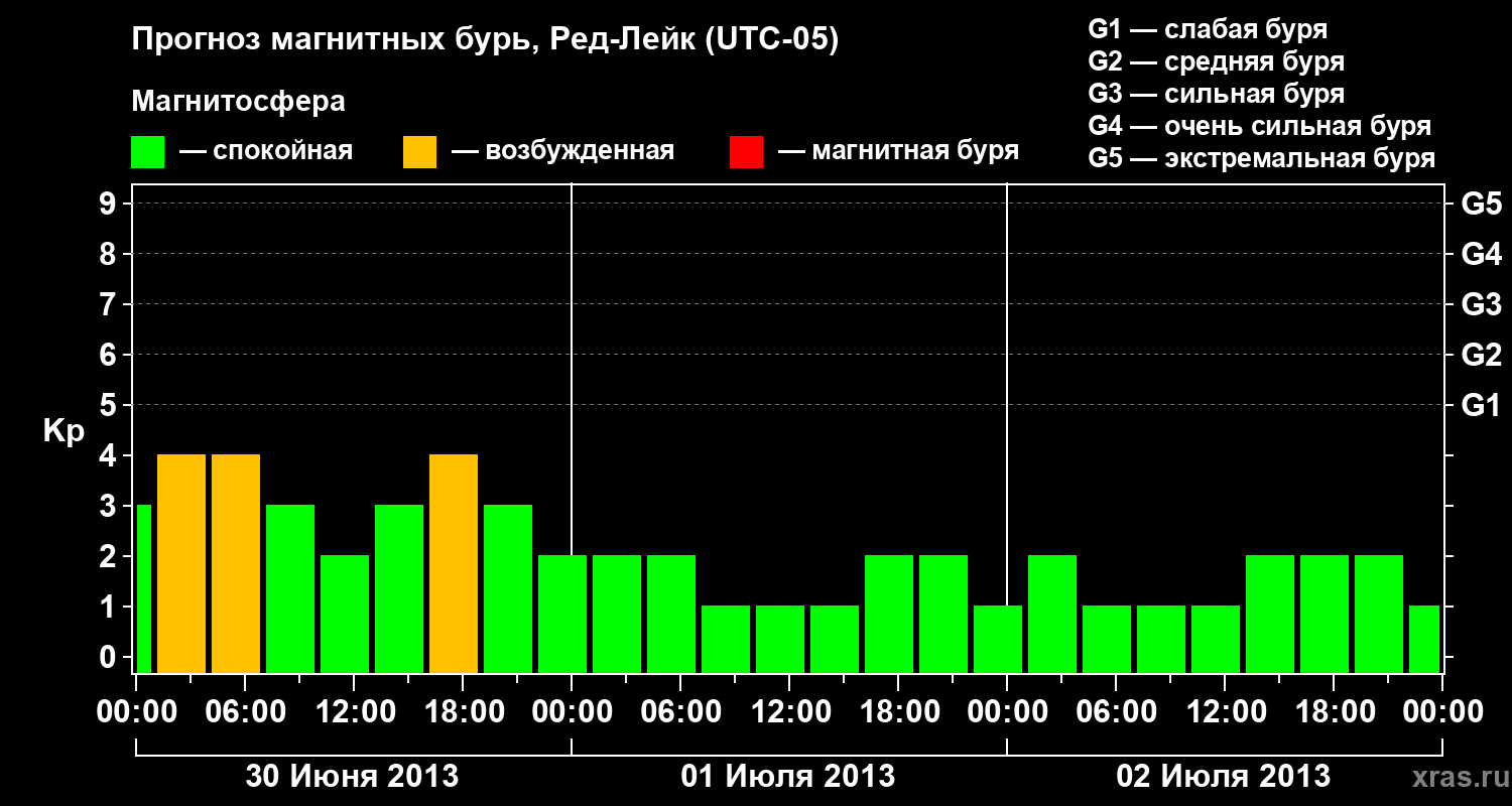 Прогноз магнитных бурь в Ред-Лейке — 30 июня 2013 года
