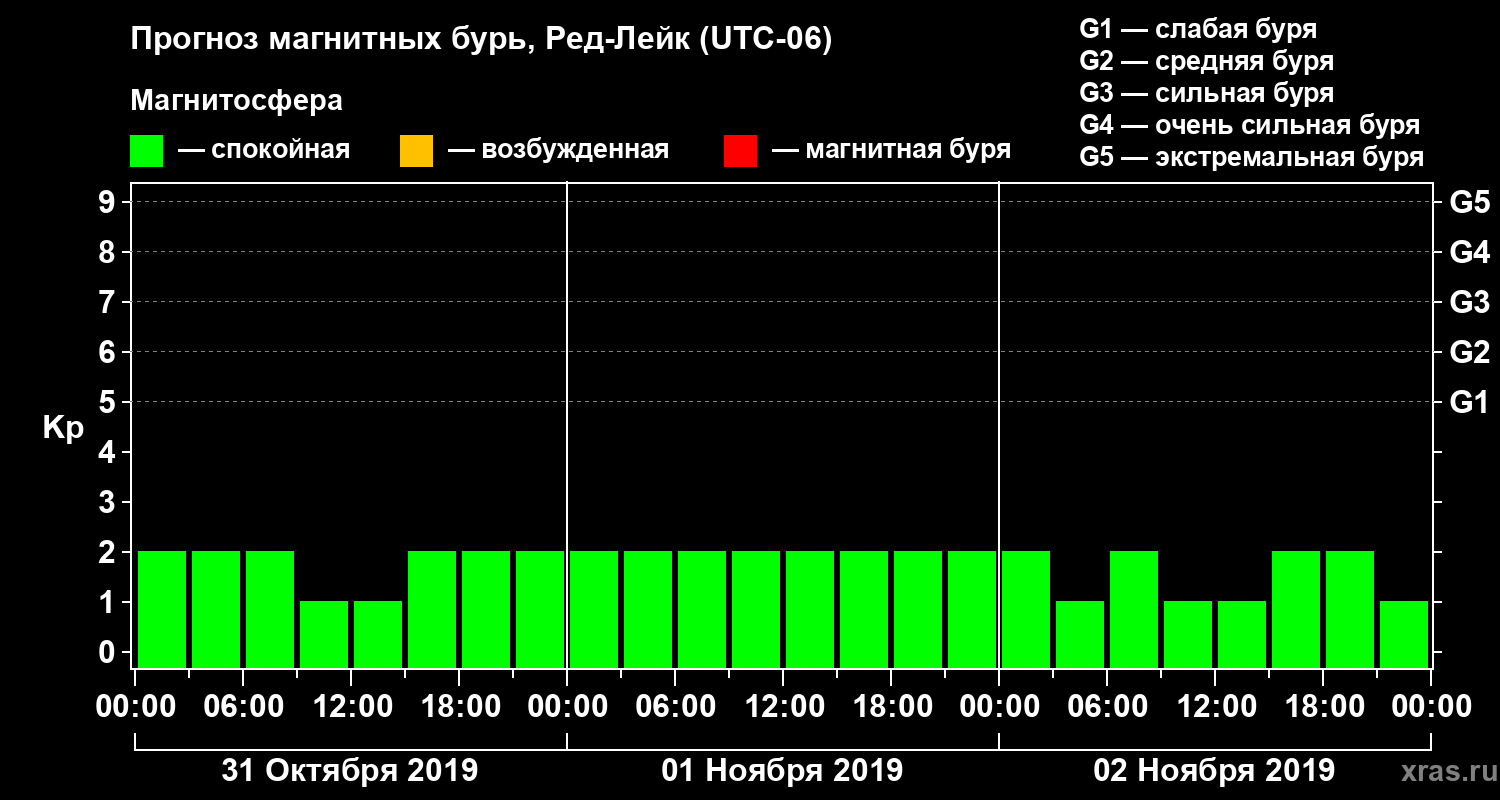 Прогноз магнитных бурь в Ред-Лейке — 31 октября 2019 года