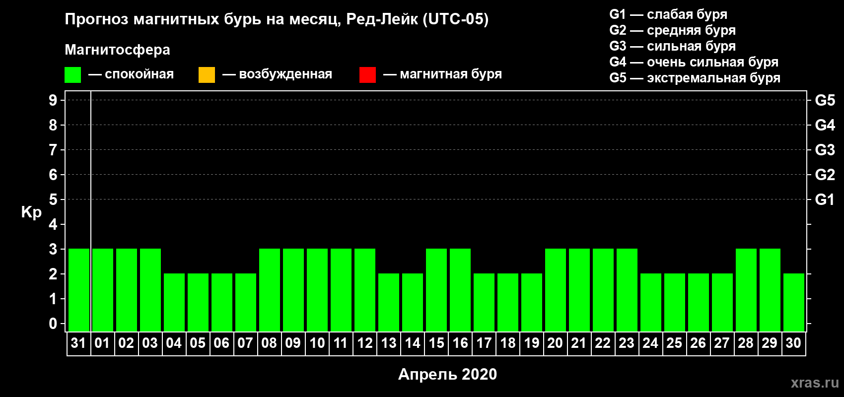 Прогноз магнитных бурь в Ред-Лейке — 31 марта 2020 года