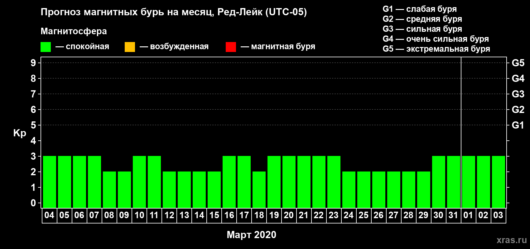 Прогноз магнитных бурь в Ред-Лейке — 4 марта 2020 года