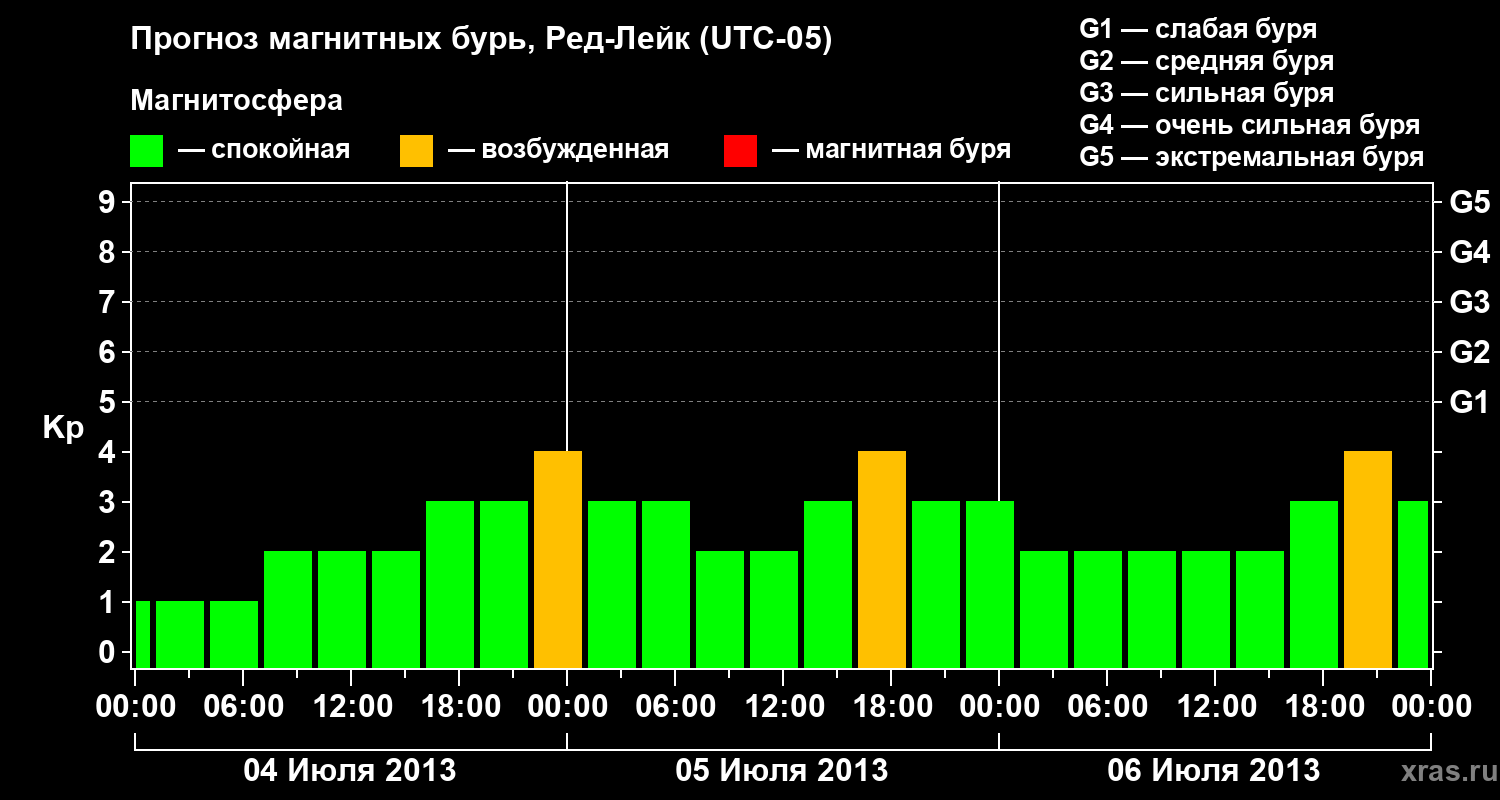 Прогноз магнитных бурь в Ред-Лейке — 4 июля 2013 года