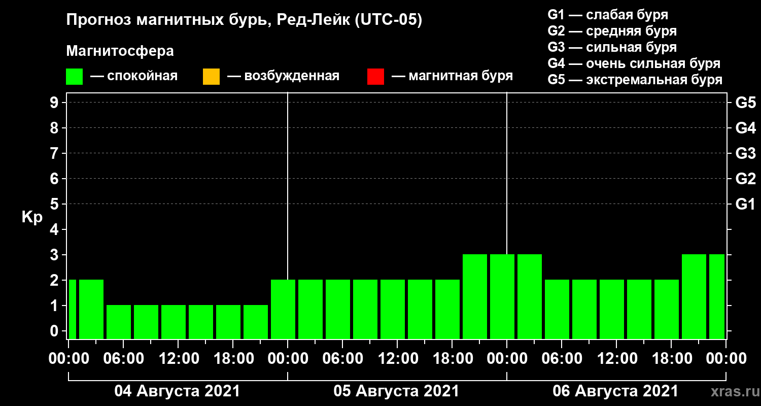 Прогноз магнитных бурь в Ред-Лейке на 4 августа 2021 года