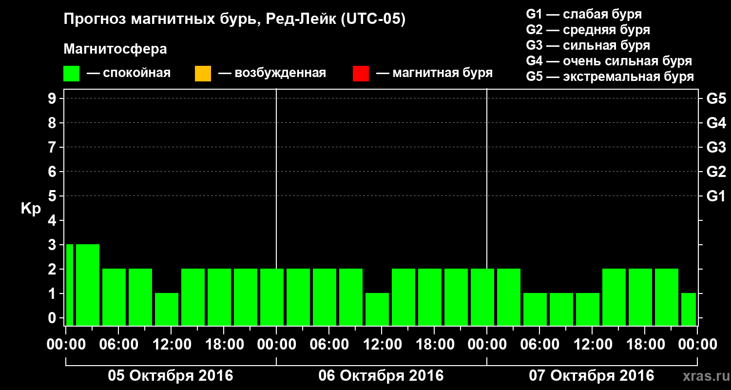 Прогноз магнитных бурь в Ред-Лейке — 5 октября 2016 года