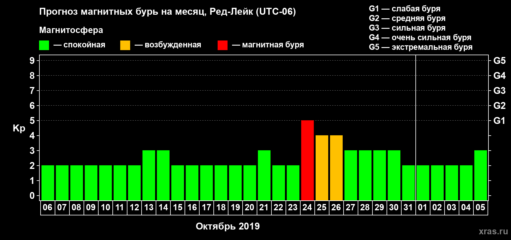 Прогноз магнитных бурь в Ред-Лейке — 6 октября 2019 года