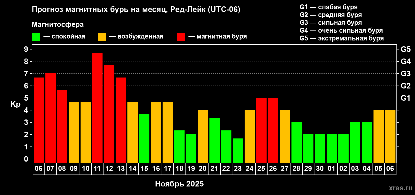 Прогноз магнитных бурь в Ред-Лейке — 6 ноября 2025 года