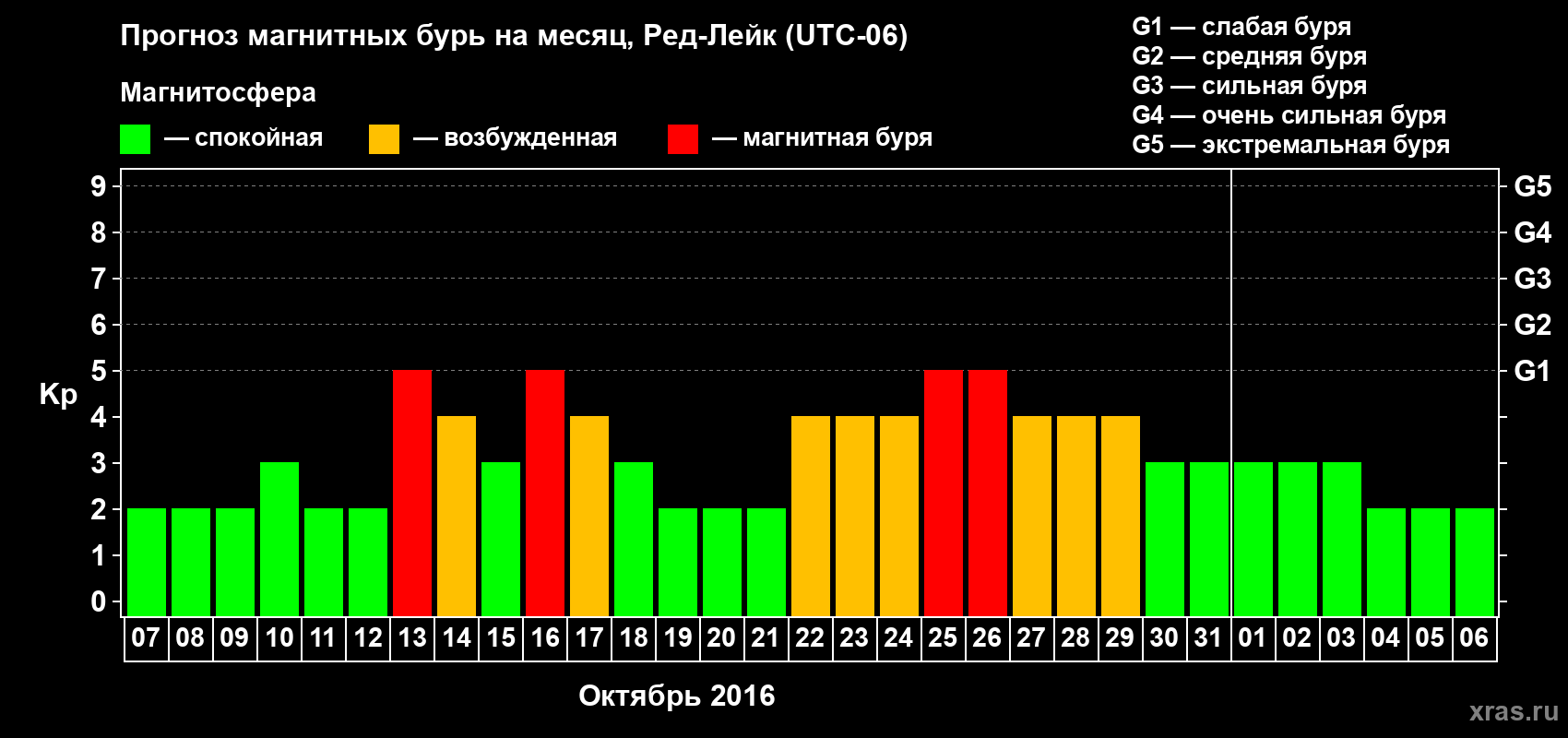 Прогноз магнитных бурь в Ред-Лейке — 7 октября 2016 года