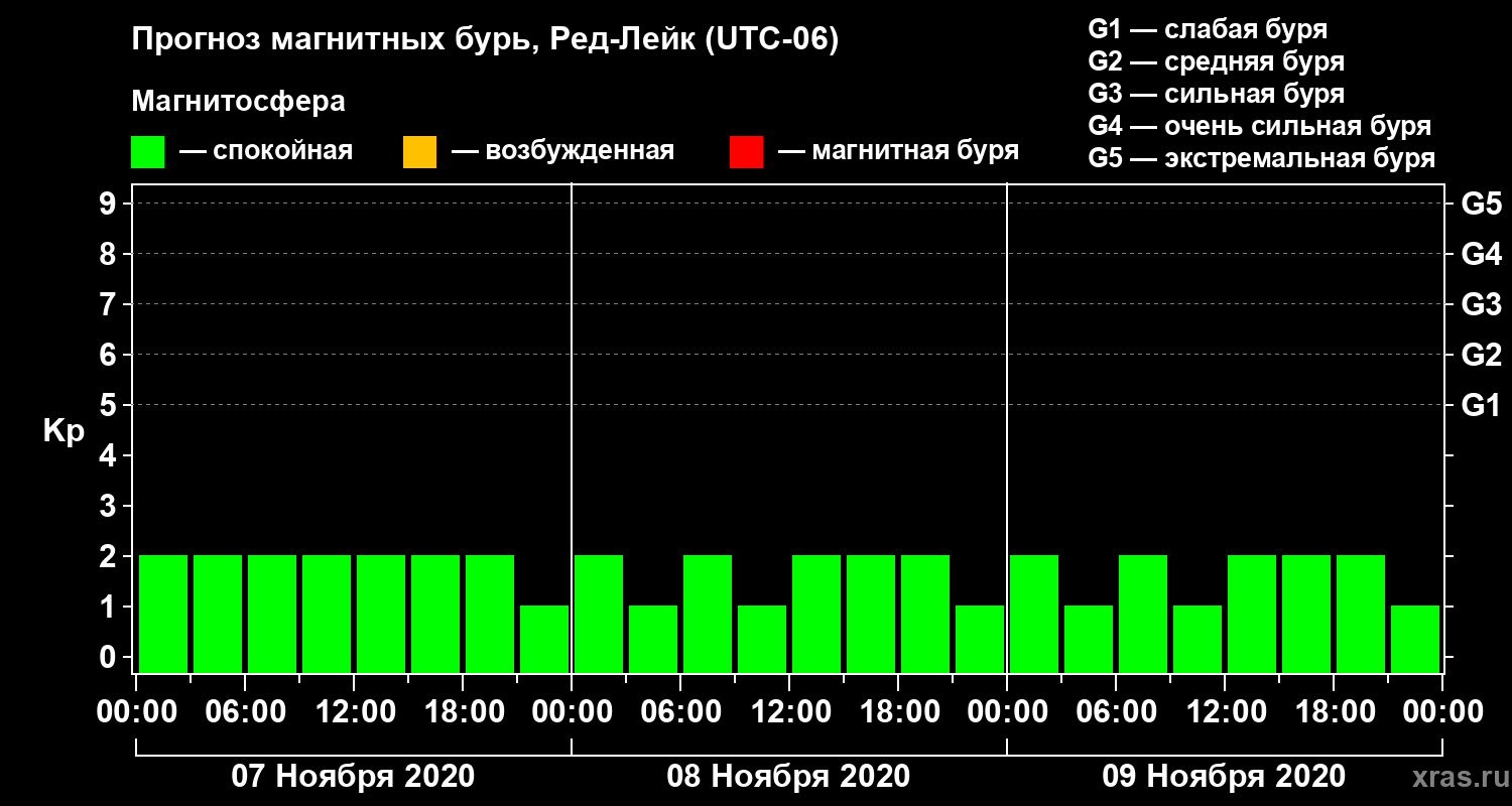 Прогноз магнитных бурь в Ред-Лейке — 7 ноября 2020 года