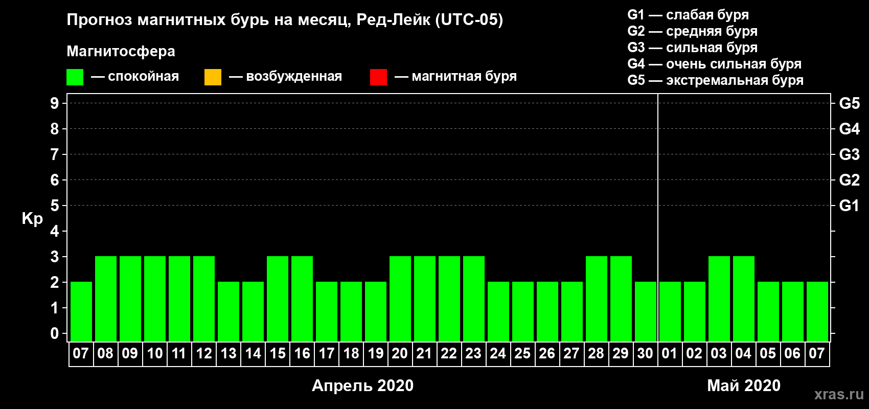 Прогноз магнитных бурь в Ред-Лейке — 7 апреля 2020 года