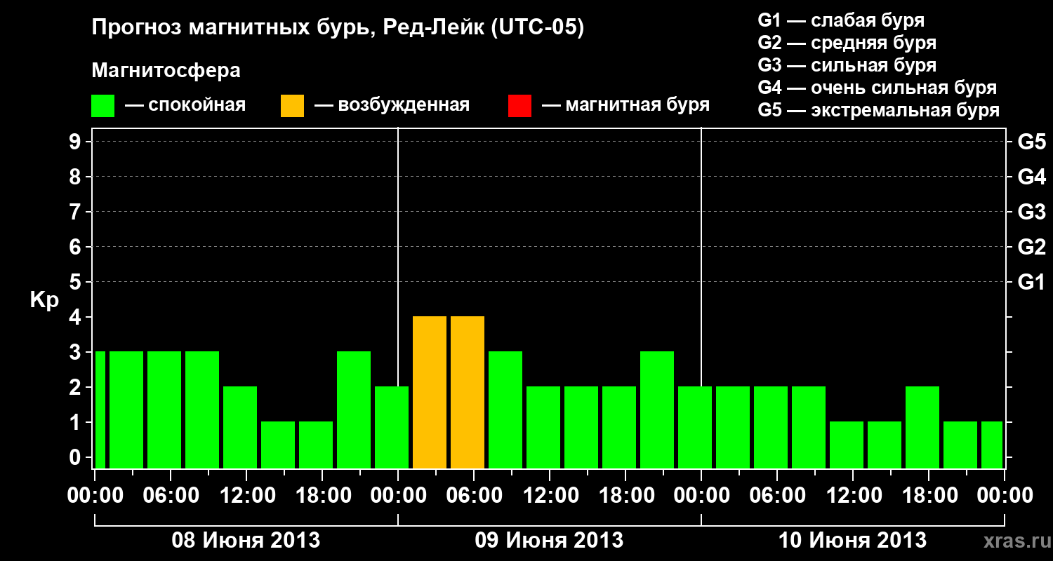 Прогноз магнитных бурь в Ред-Лейке — 8 июня 2013 года