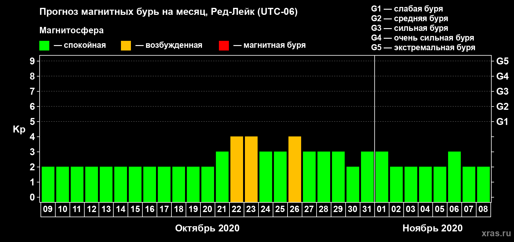 Прогноз магнитных бурь в Ред-Лейке — 9 октября 2020 года