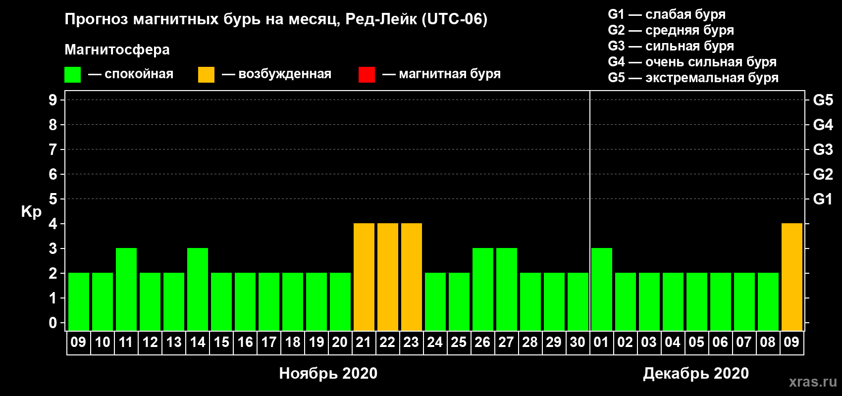 Прогноз магнитных бурь в Ред-Лейке — 9 ноября 2020 года