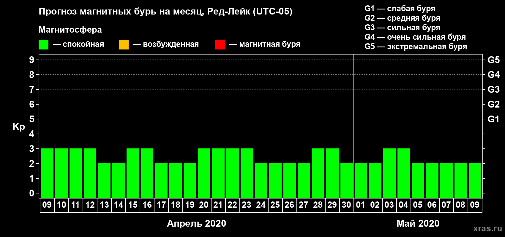 Прогноз магнитных бурь в Ред-Лейке — 9 апреля 2020 года