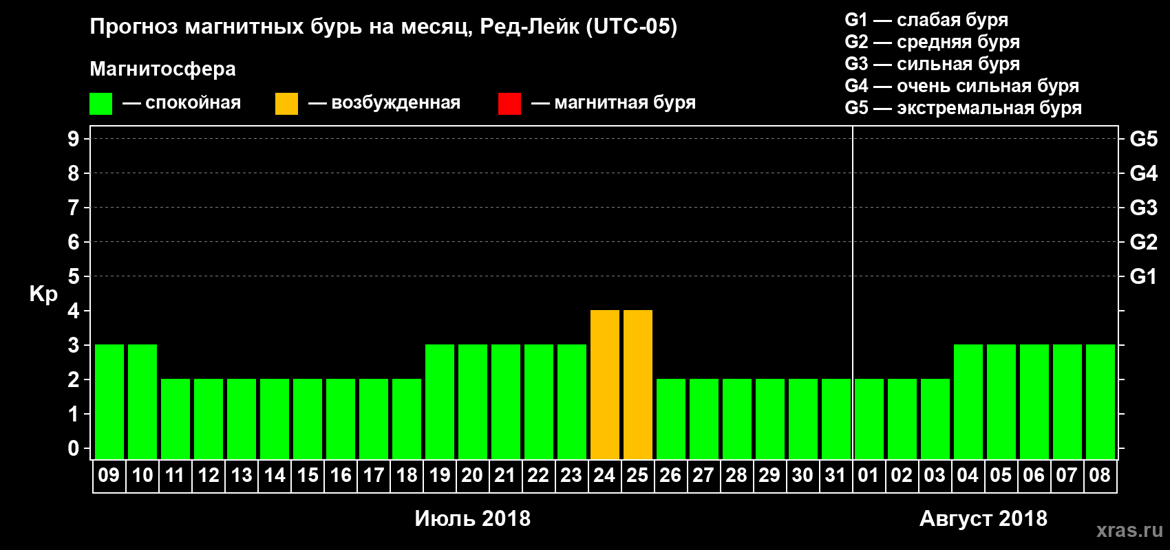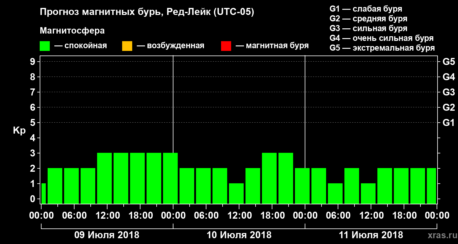 Прогноз магнитных бурь в Ред-Лейке — 9 июля 2018 года