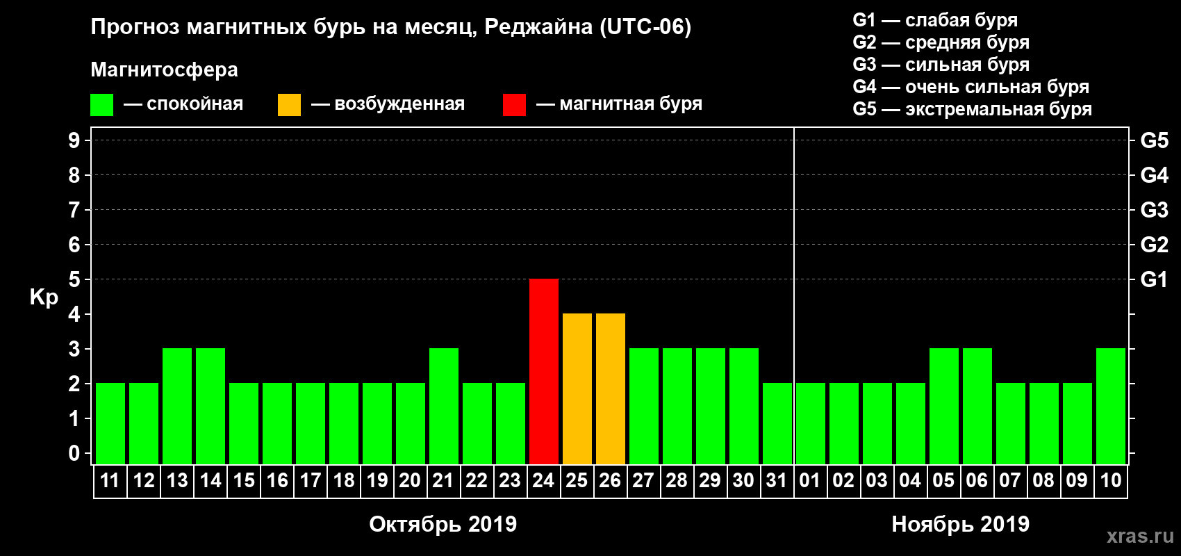 Прогноз магнитных бурь в Реджайне — 11 октября 2019 года