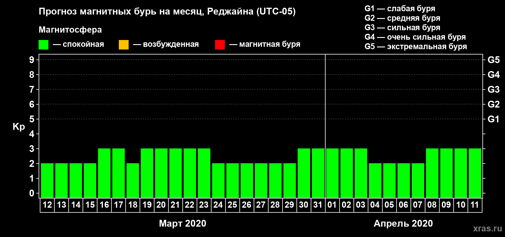 Прогноз магнитных бурь в Реджайне на 12 марта 2020 года