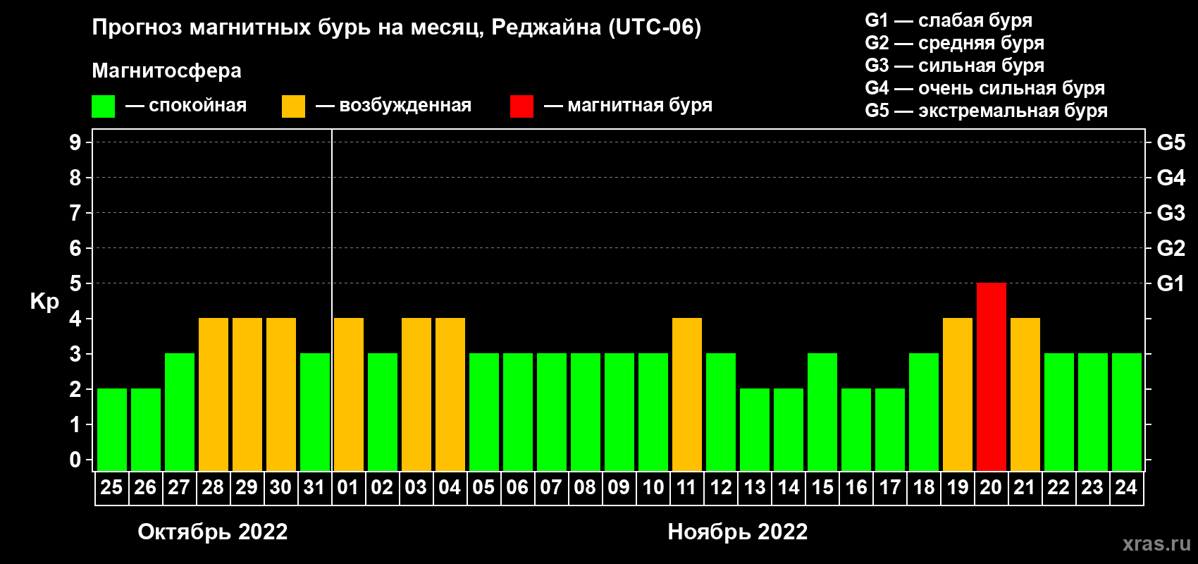 Прогноз магнитных бурь в Реджайне на 25 октября 2022 года