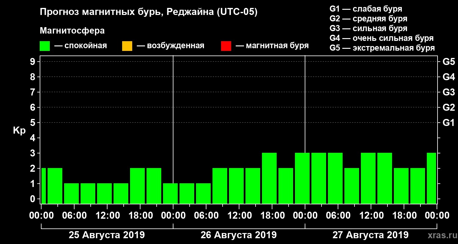 Прогноз магнитных бурь в Реджайне на 25 августа 2019 года