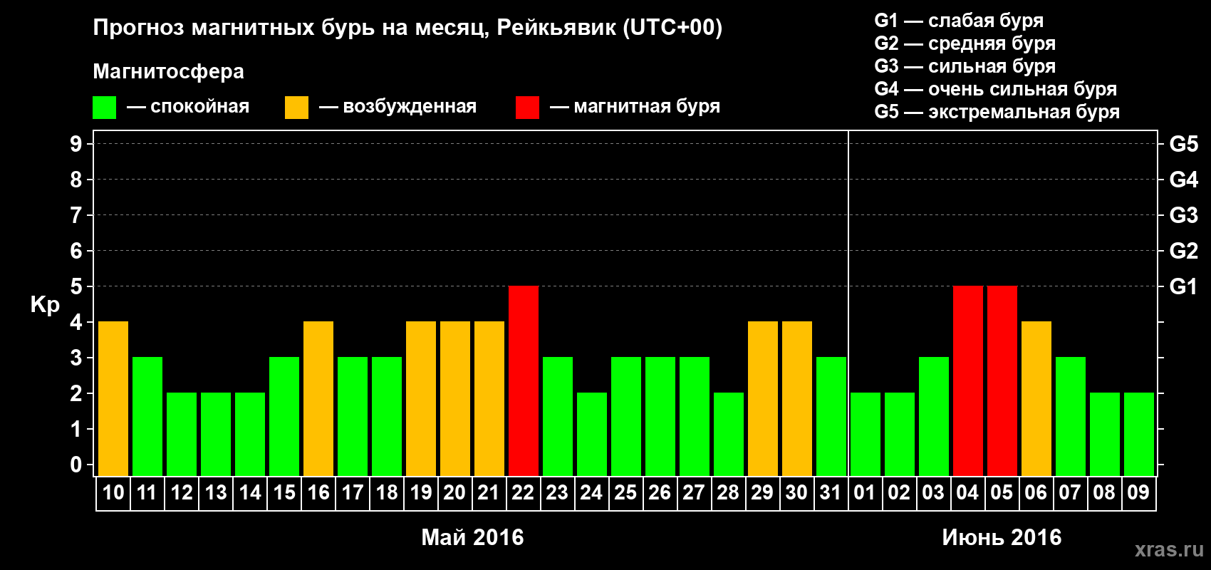 Прогноз магнитных бурь в Рейкьявике — 10 мая 2016 года