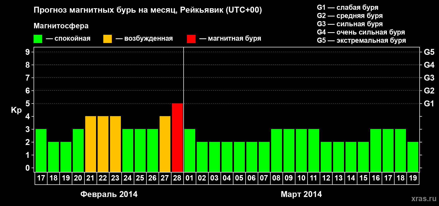 Прогноз магнитных бурь в Рейкьявике — 17 февраля 2014 года