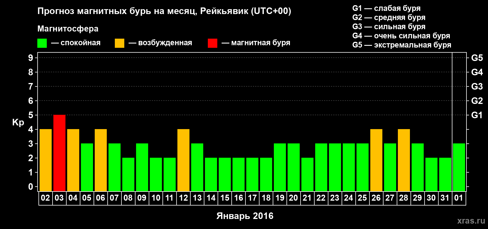Прогноз магнитных бурь в Рейкьявике — 2 января 2016 года