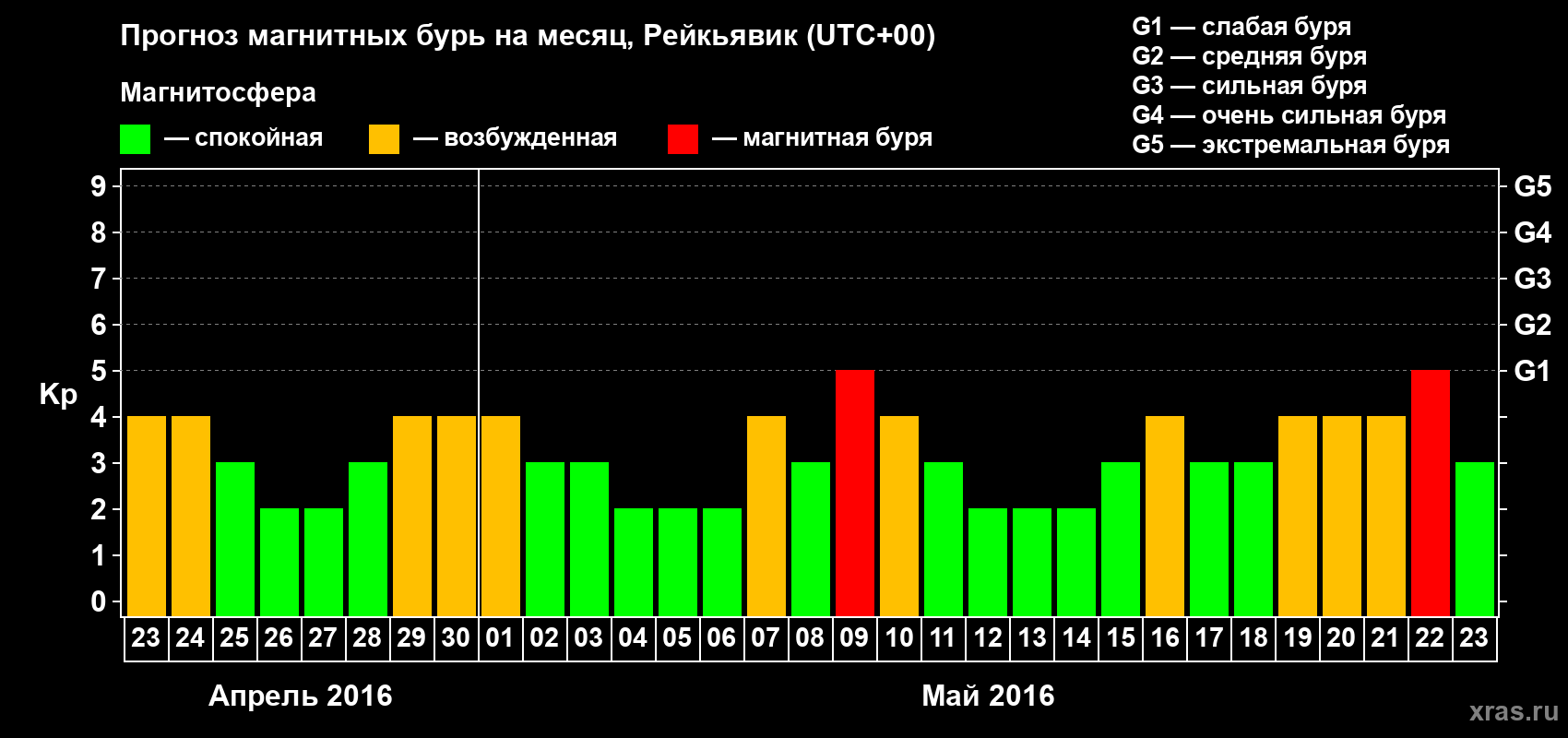Прогноз магнитных бурь в Рейкьявике — 23 апреля 2016 года