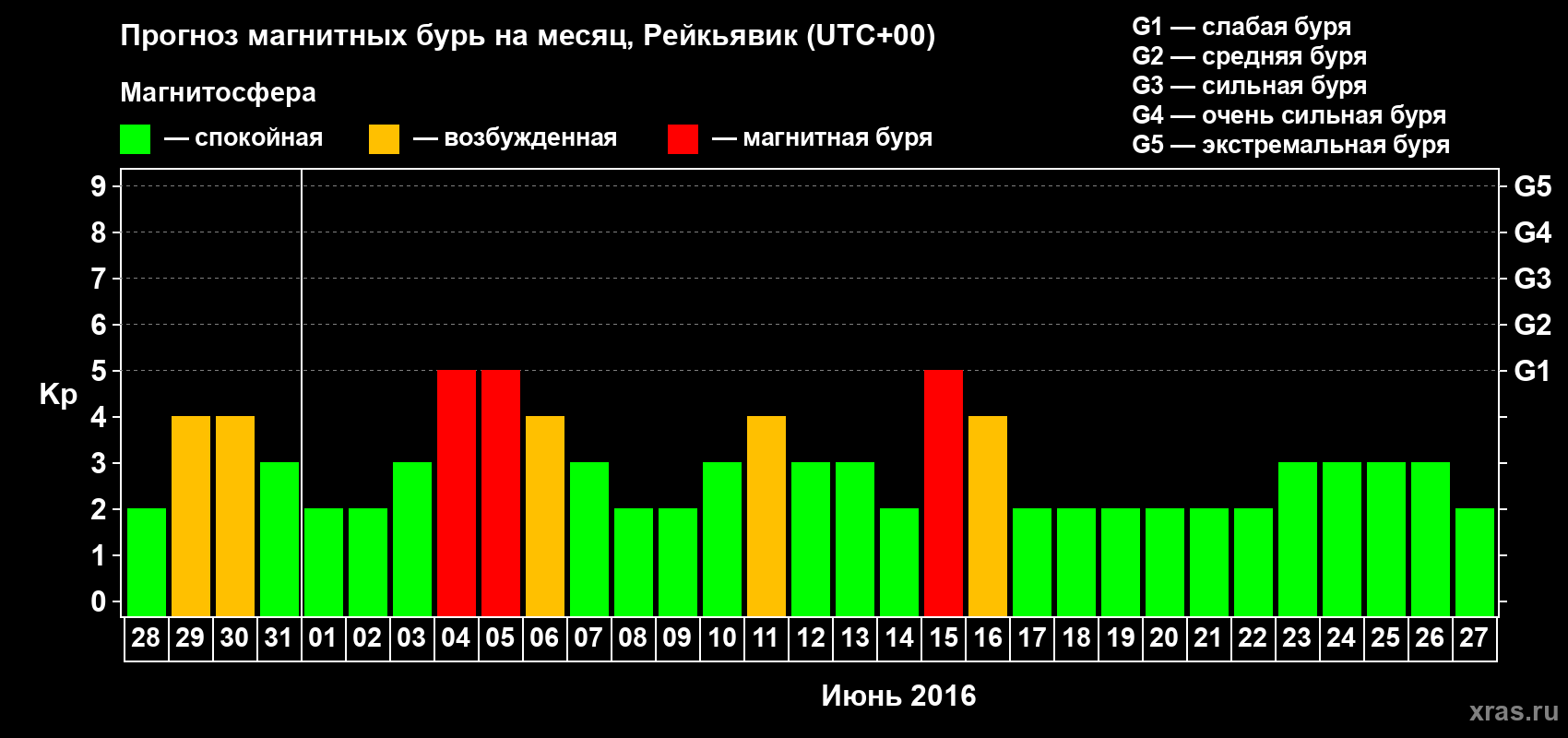 Прогноз магнитных бурь в Рейкьявике — 28 мая 2016 года