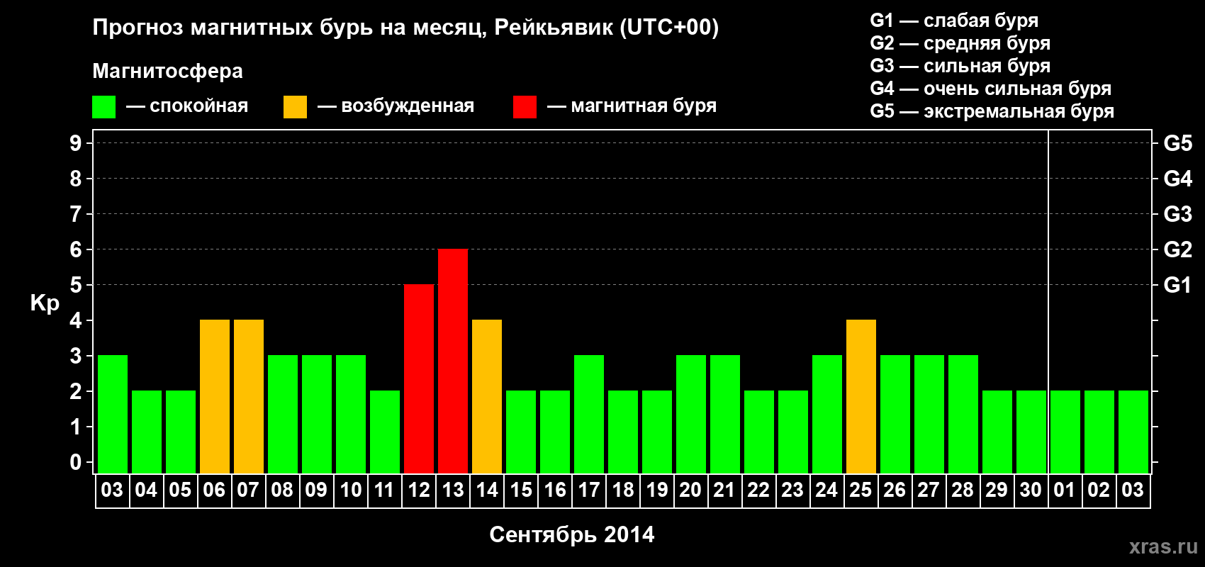 Прогноз магнитных бурь в Рейкьявике — 3 сентября 2014 года