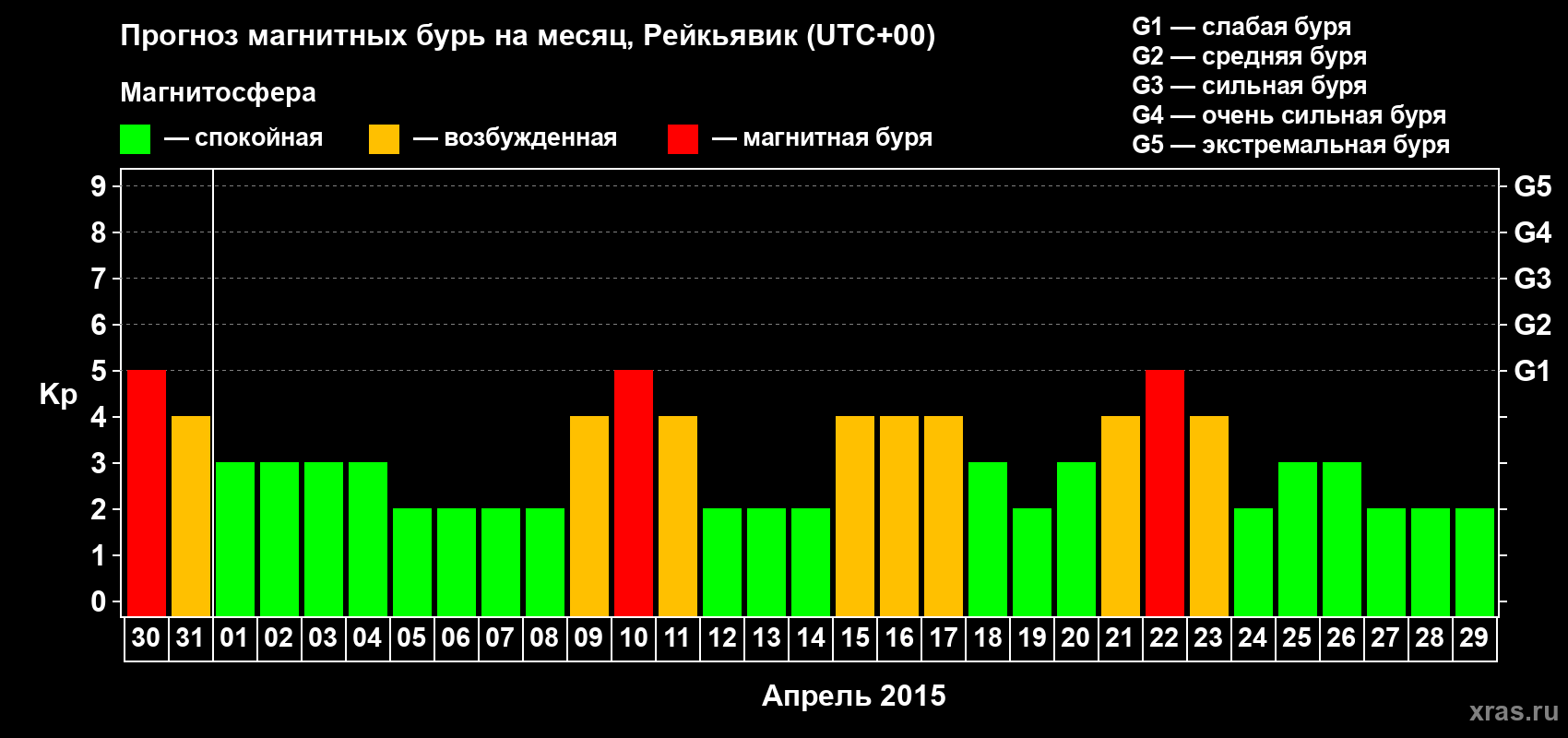 Прогноз магнитных бурь в Рейкьявике — 30 марта 2015 года