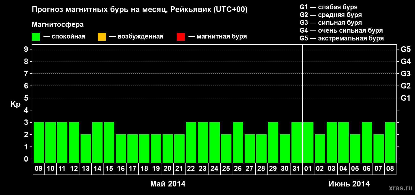 Прогноз магнитных бурь в Рейкьявике — 9 мая 2014 года