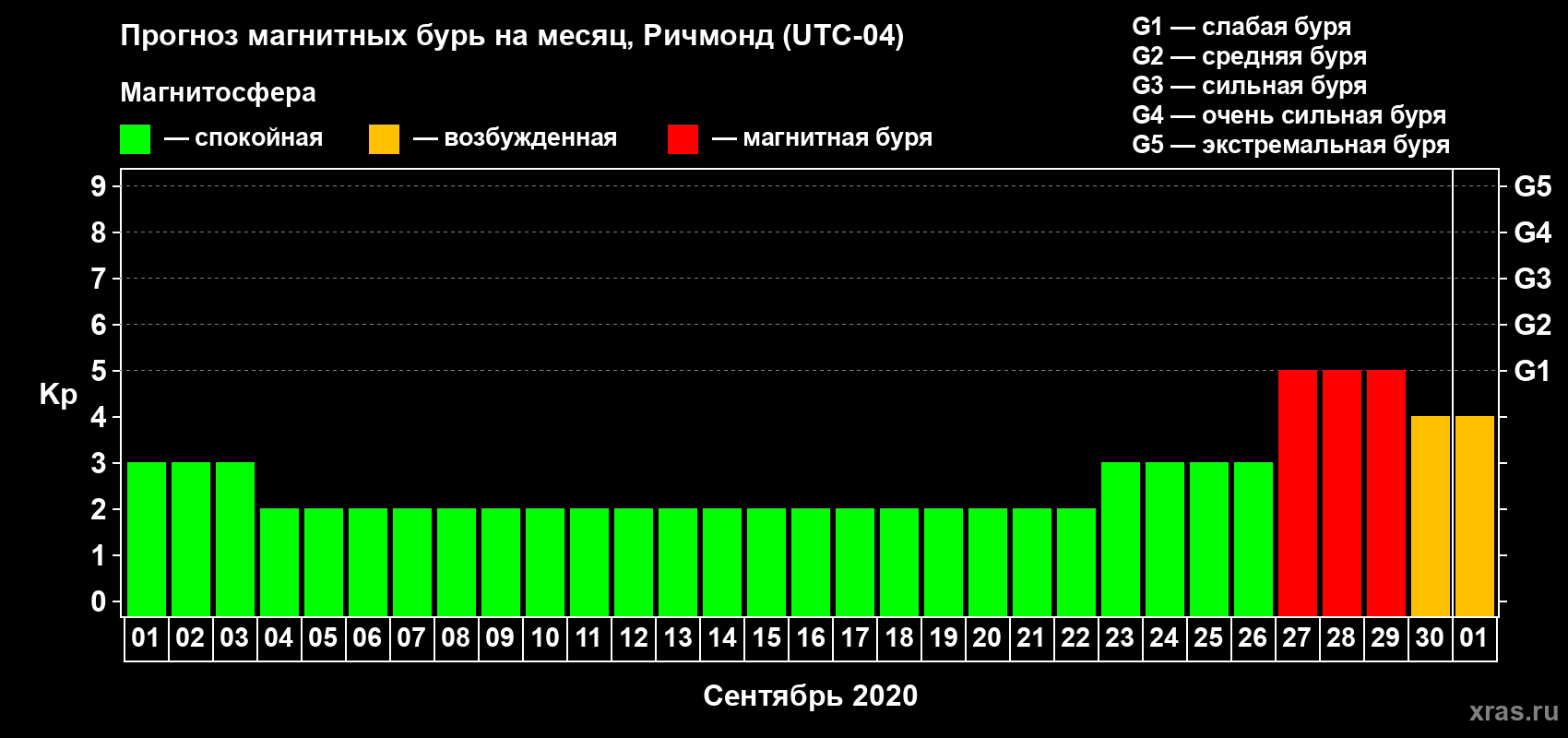 Прогноз магнитных бурь в Ричмонде — 1 сентября 2020 года