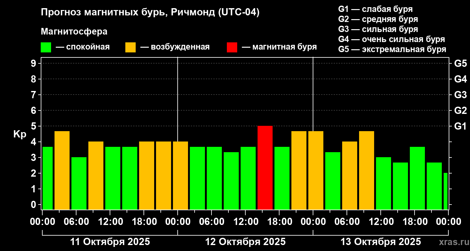 Прогноз магнитных бурь в Ричмонде на 11 октября 2025 года