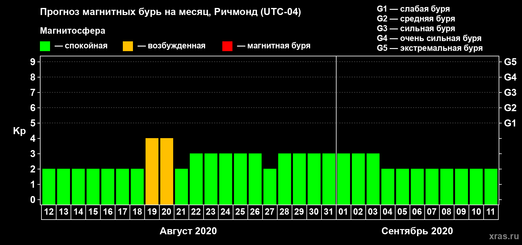 Прогноз магнитных бурь в Ричмонде — 12 августа 2020 года