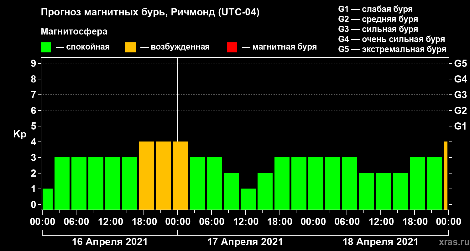 Прогноз магнитных бурь в Ричмонде на 16 апреля 2021 года