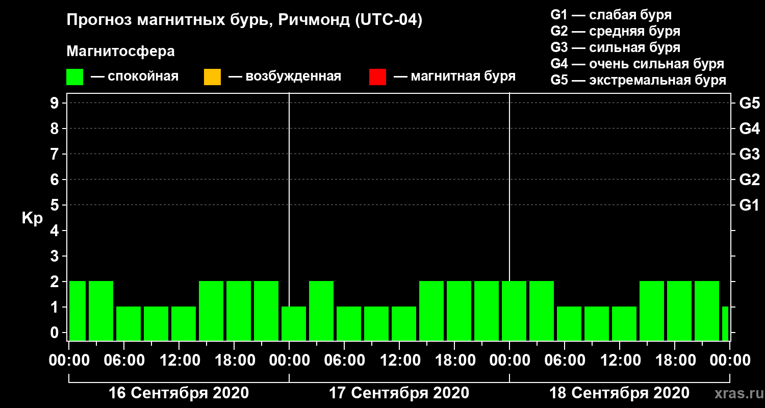 Прогноз магнитных бурь в Ричмонде — 16 сентября 2020 года