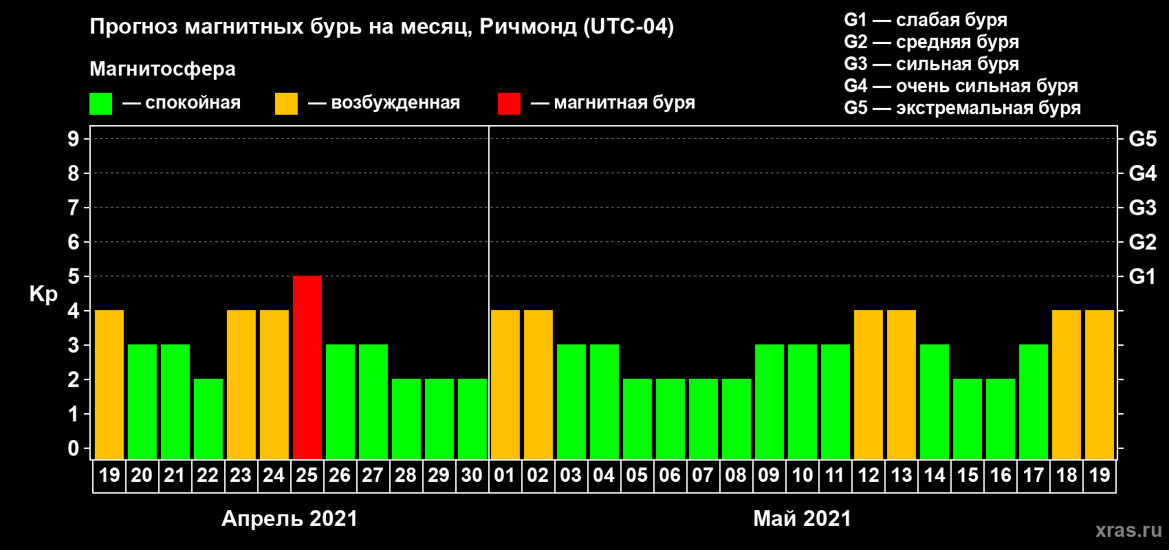Прогноз магнитных бурь в Ричмонде — 19 апреля 2021 года