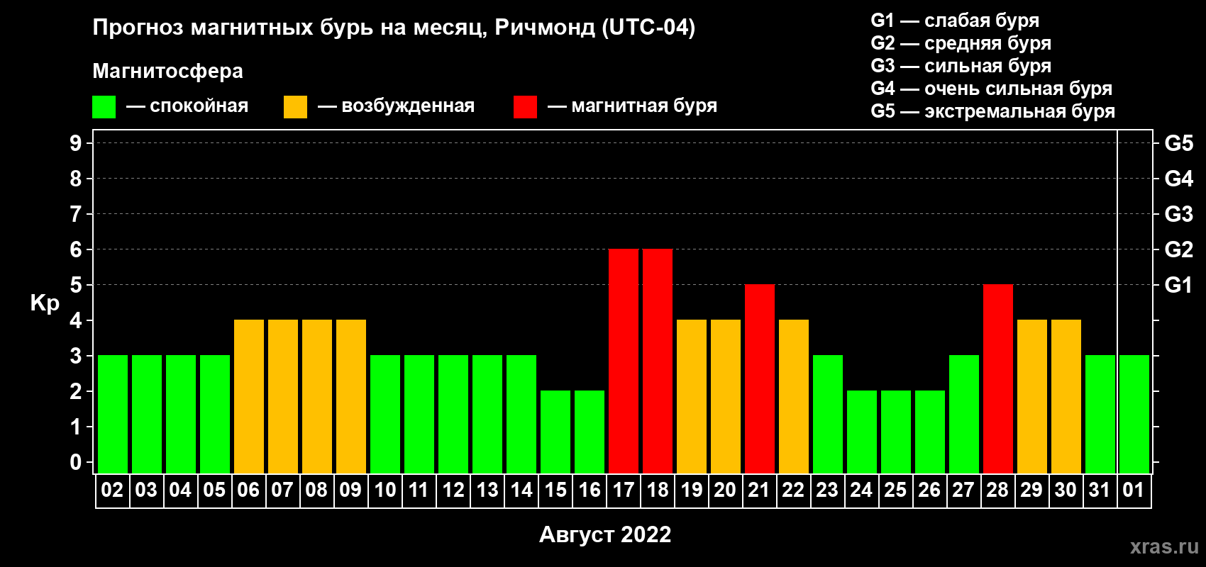 Прогноз магнитных бурь в Ричмонде на 2 августа 2022 года