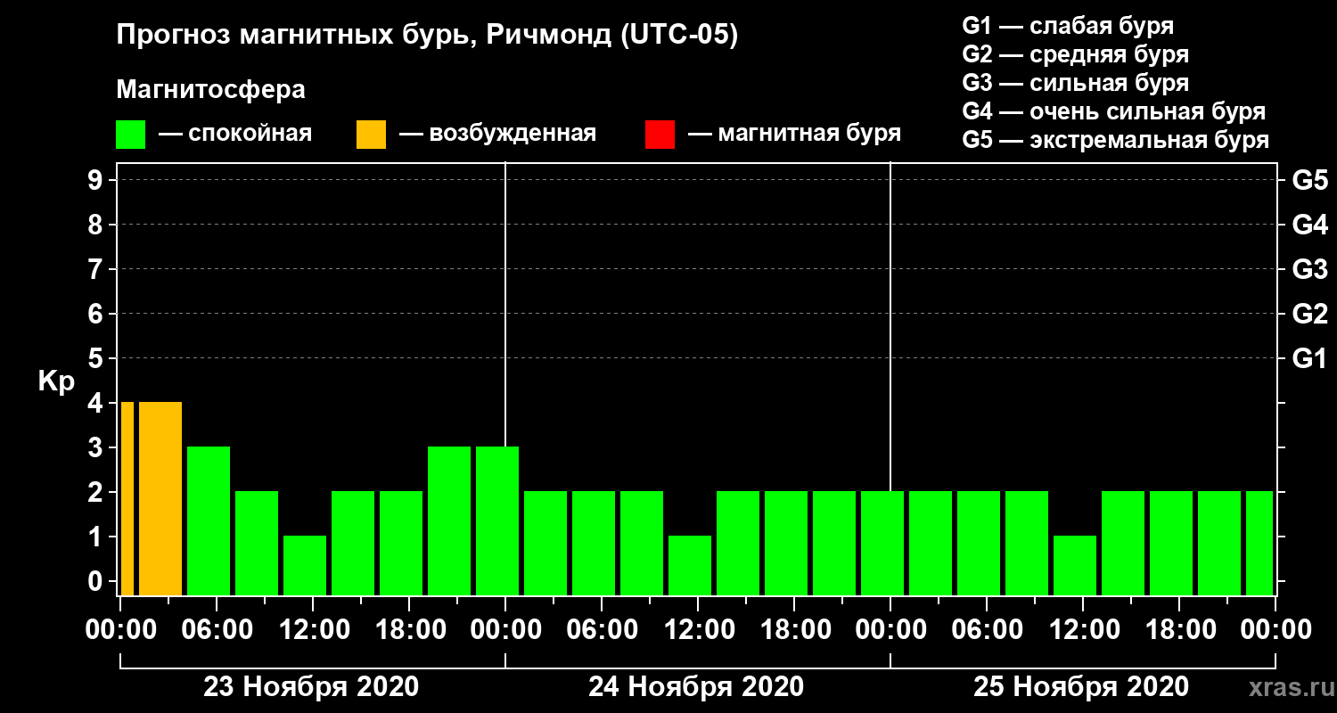 Прогноз магнитных бурь в Ричмонде на 23 ноября 2020 года