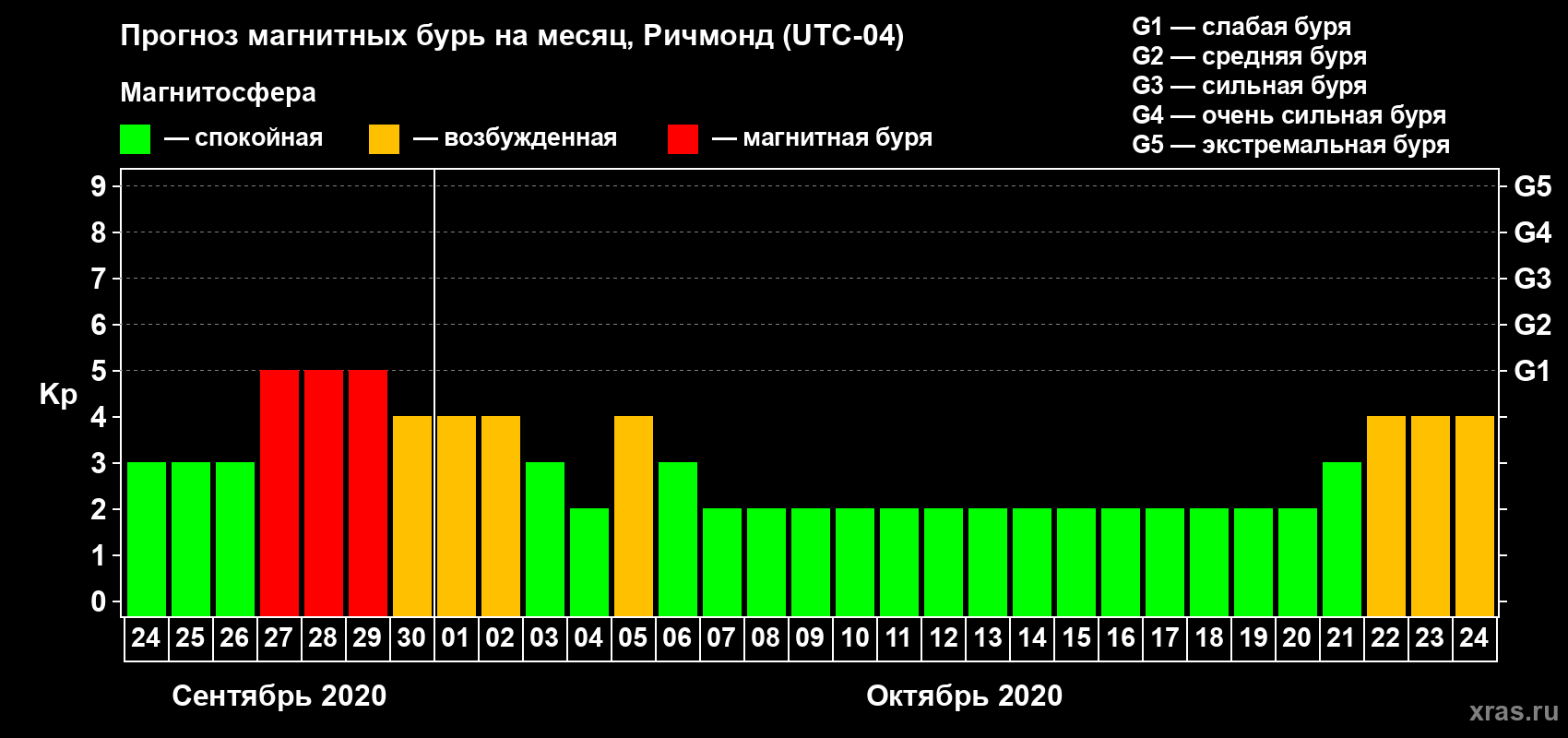 Прогноз магнитных бурь в Ричмонде — 24 сентября 2020 года