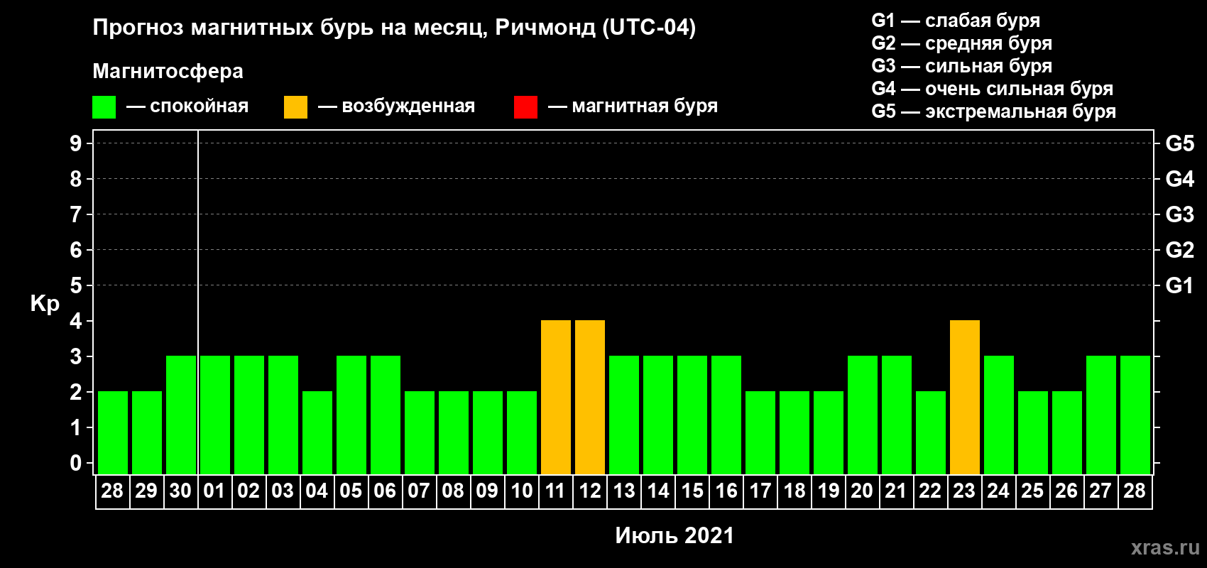 Прогноз магнитных бурь в Ричмонде — 28 июня 2021 года