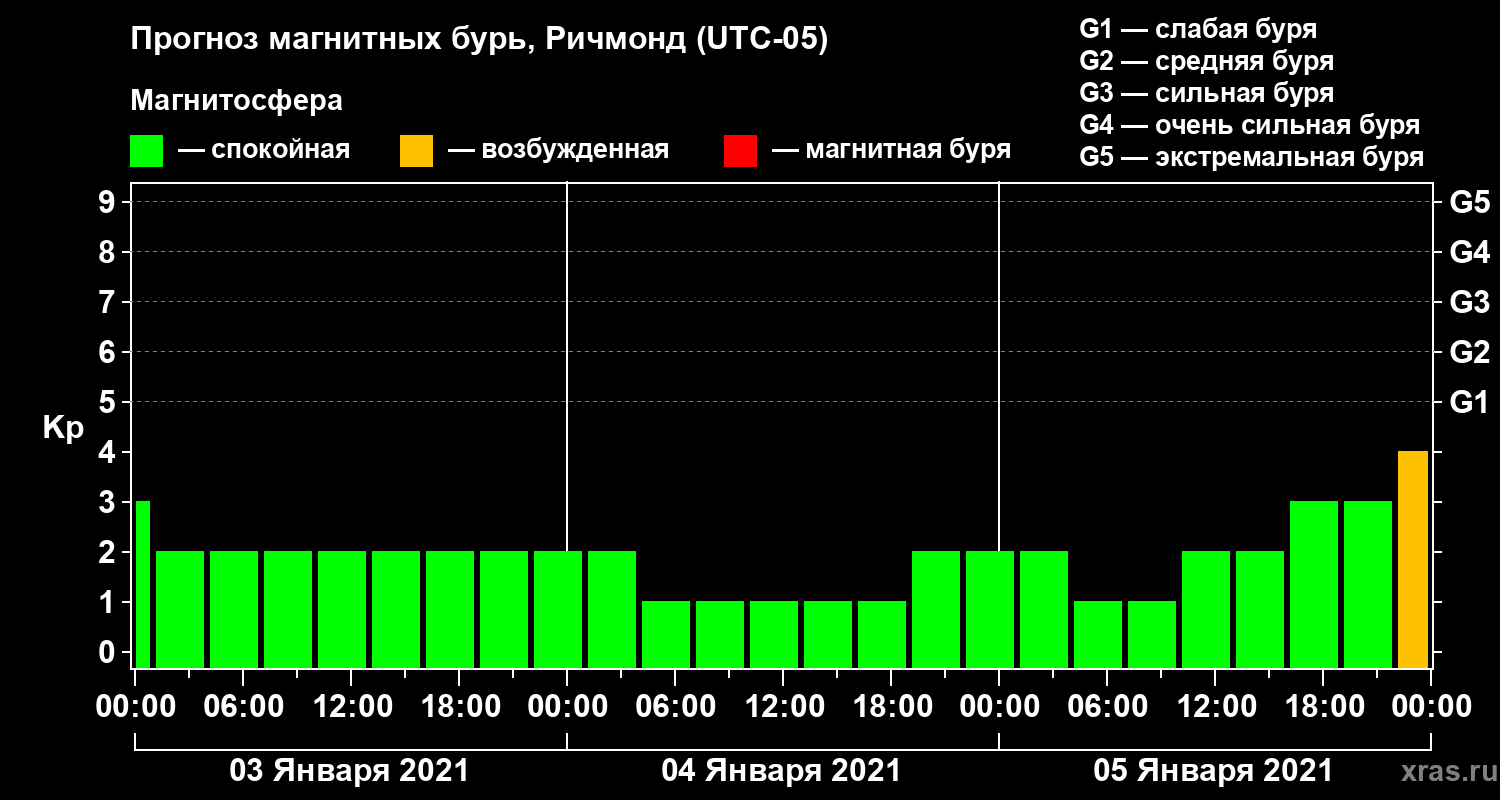 Прогноз магнитных бурь в Ричмонде на 3 января 2021 года