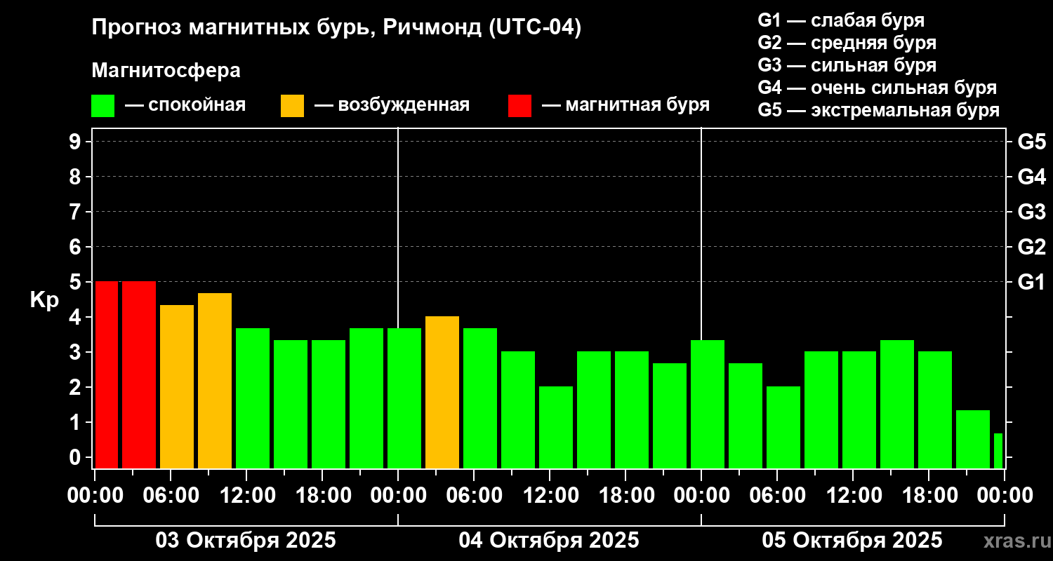 Прогноз магнитных бурь в Ричмонде — 3 октября 2025 года