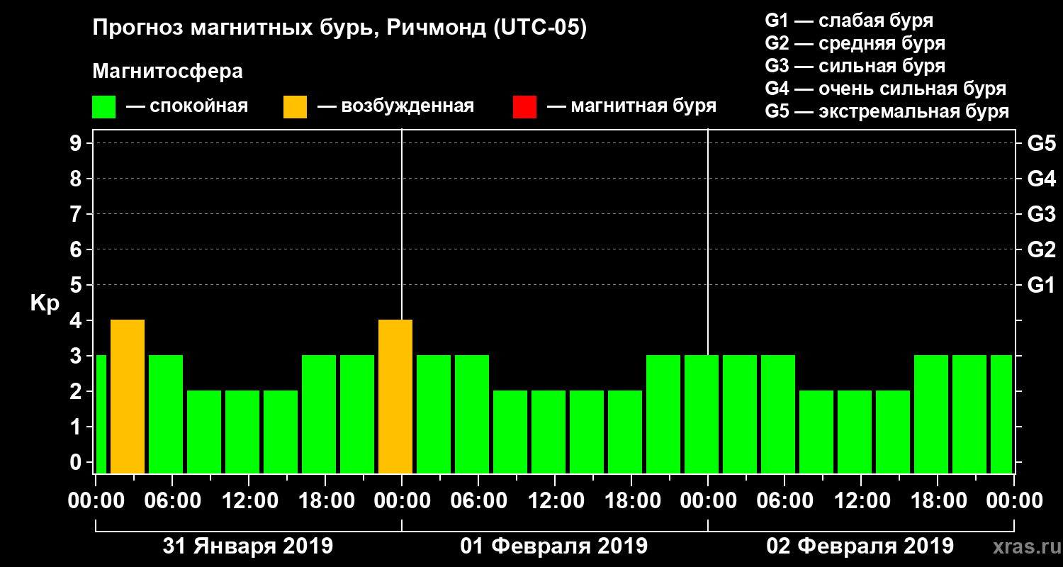 Прогноз магнитных бурь в Ричмонде — 31 января 2019 года
