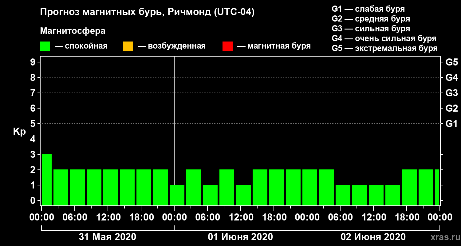 Прогноз магнитных бурь в Ричмонде на 31 мая 2020 года