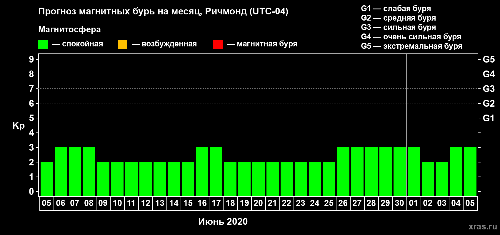 Прогноз магнитных бурь в Ричмонде — 5 июня 2020 года