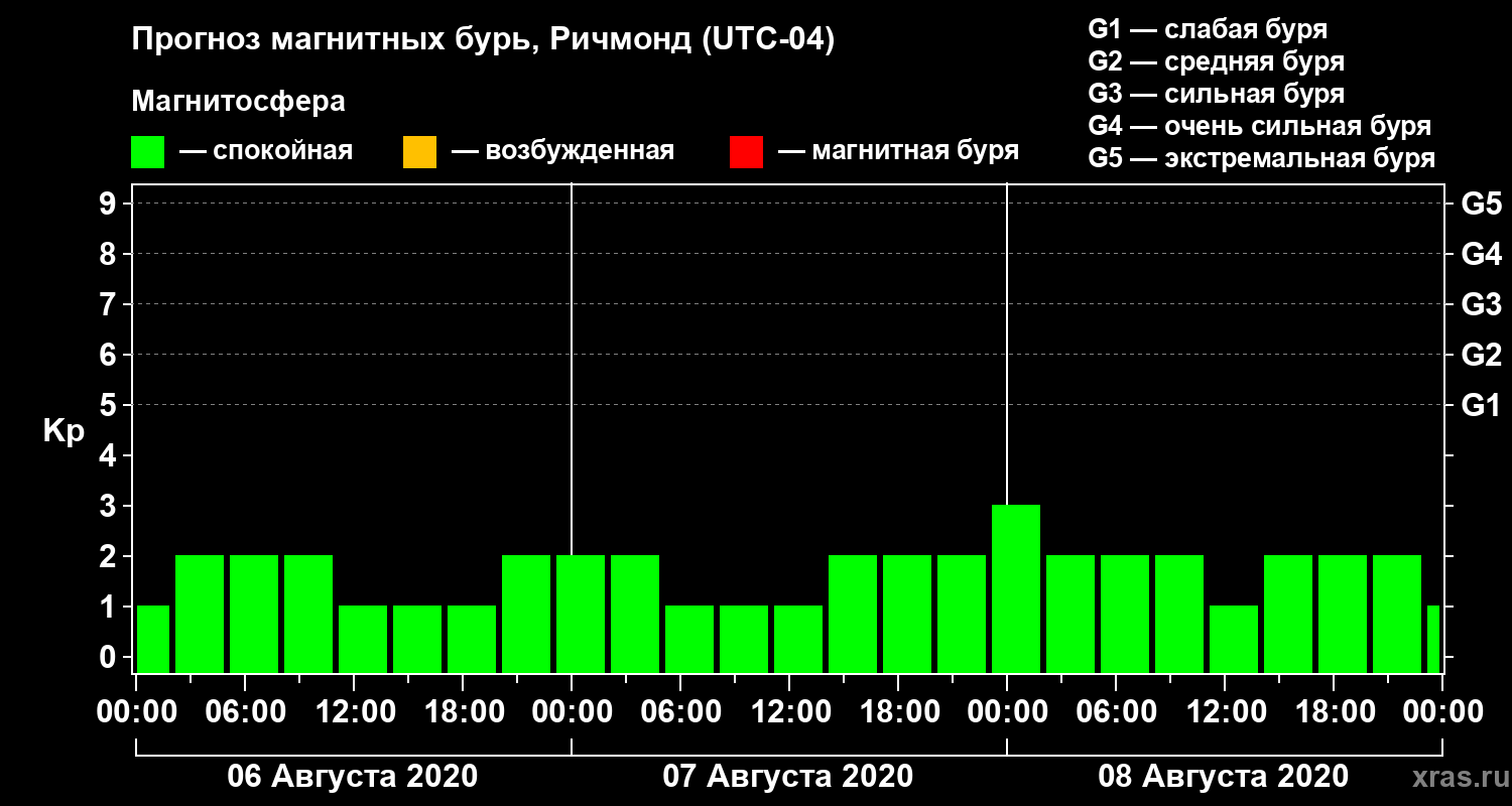 Прогноз магнитных бурь в Ричмонде на 6 августа 2020 года