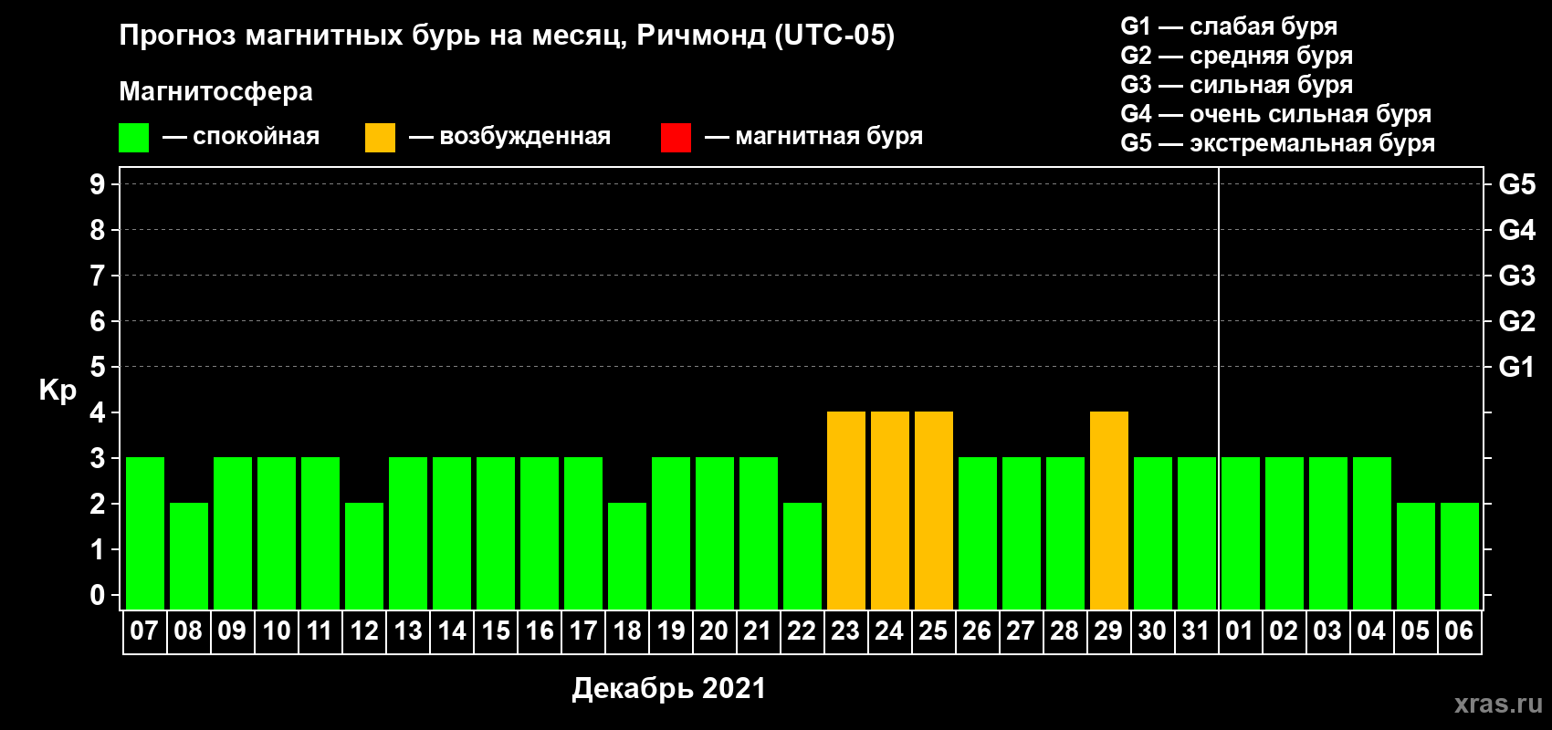 Прогноз магнитных бурь в Ричмонде — 7 декабря 2021 года
