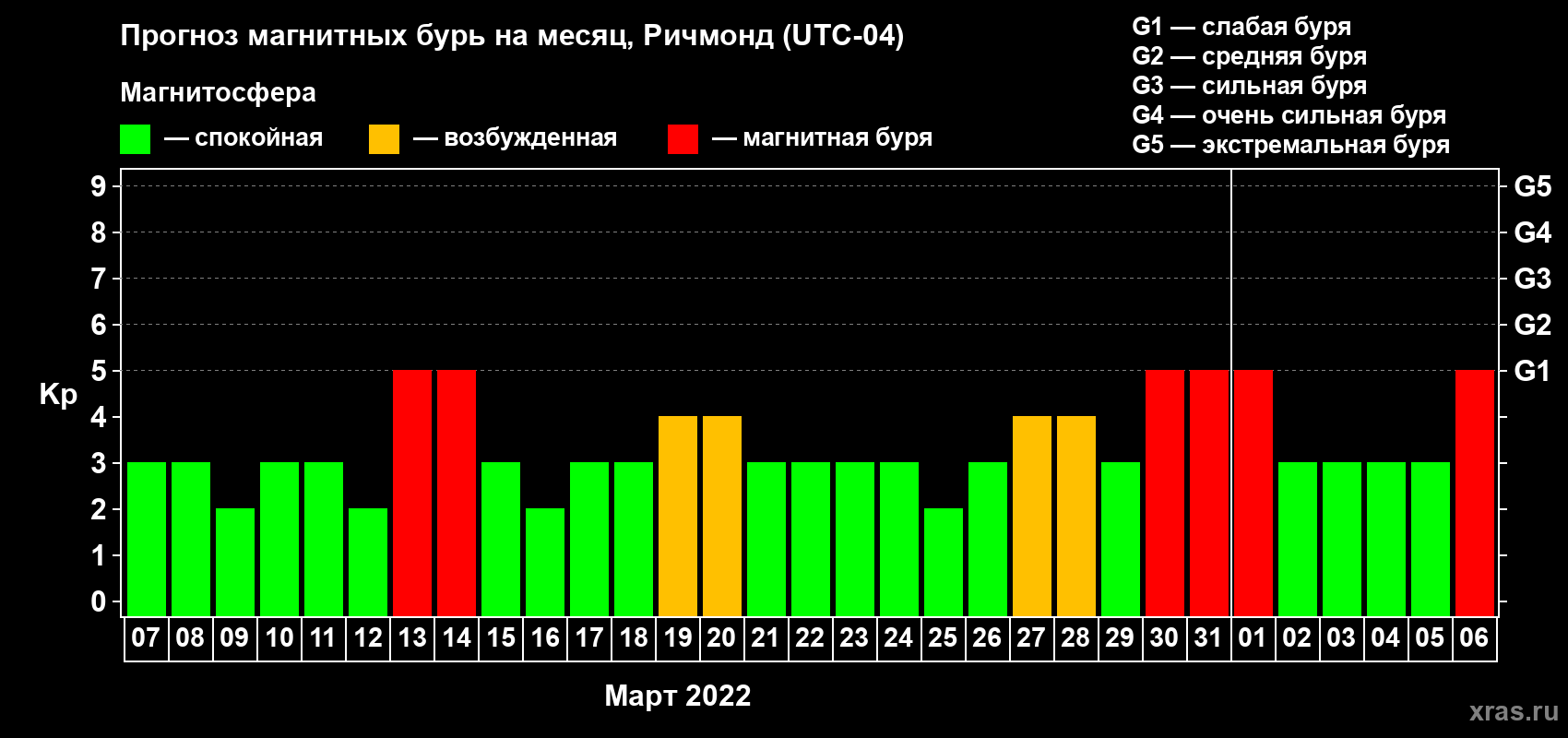 Прогноз магнитных бурь в Ричмонде — 7 марта 2022 года